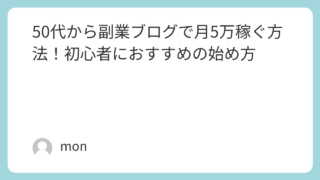 「今の収入にプラス5万円あれば、将来の不安がなくなるのに……」この記事では、50代から初心者でもブログ副業で月5万円の収益を目指すための具体的なステップを解説します。ブログで商品を紹介して収益をだすことができます。商品を紹介して購入いただけ...