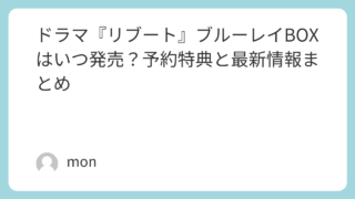 「鈴木亮平さん主演の『リブート』、家でもじっくり見返したいけど円盤はいつ出るのかな?」この記事では、日曜劇場『リブート』のブルーレイ(Blu-ray)&DVD BOXの発売日、各ショップ限定の予約特典、収録内容について詳しく解説します。本日...