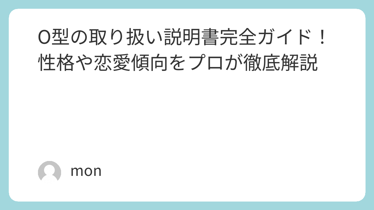 この記事では、O型の人の性格や特徴を深く理解し、良好な関係を築くための具体的な方法を解説します。