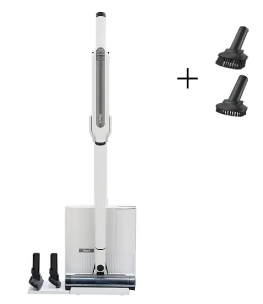 Shark CS150JAE EVOPOWER SYSTEM STD+ コードレススティッククリーナーは、掃除のたびに感じやすい「重い」「ゴミ捨てが面倒」「髪の毛が絡む」といった悩みをまとめて減らしやすいモデルです。特にCS150JAE-SET3Aは、自動ゴミ収集ドックに加えてブラシセットとプレシジョンダスターも付属しているため、床だけでなく棚のすき間や家具の上まで一台で対応しやすいのが魅力です。公式では約1.9kgの軽量設計で、掃除後はドックに戻すだけで充電とゴミ収集が完了します。